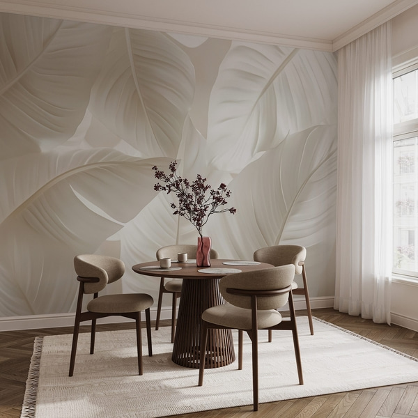 Folhas abstratas em bege e cinza, arte moderna texturizada
