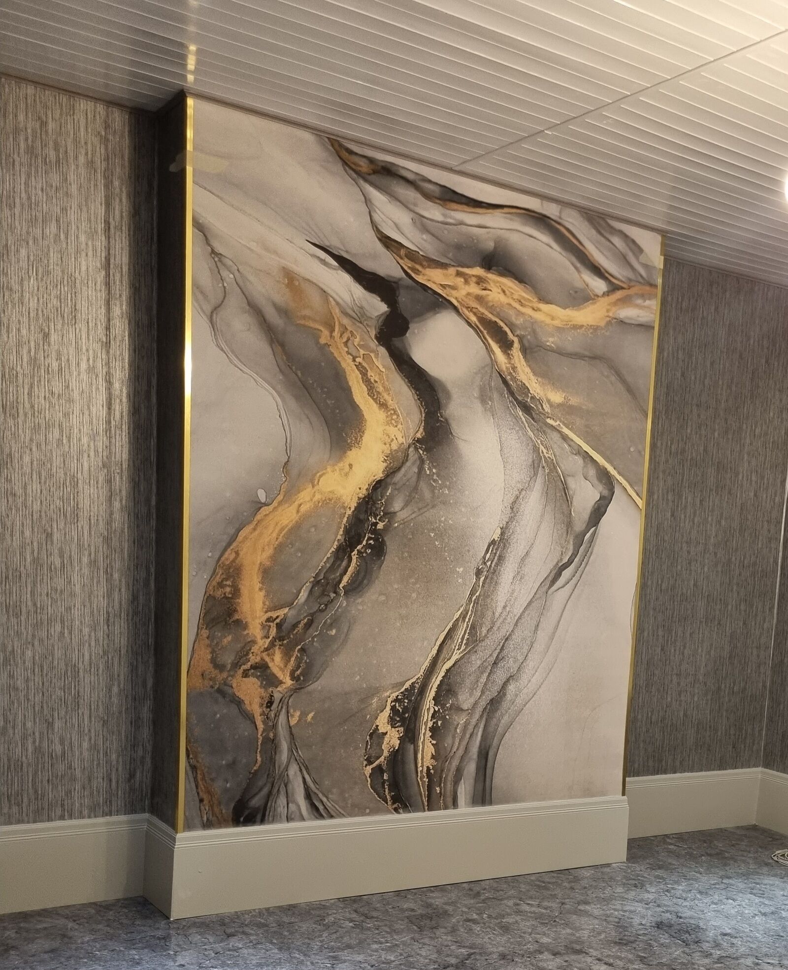 Murais de parede Mármore cinzento-amarelo, arte fluida Nr. u18250