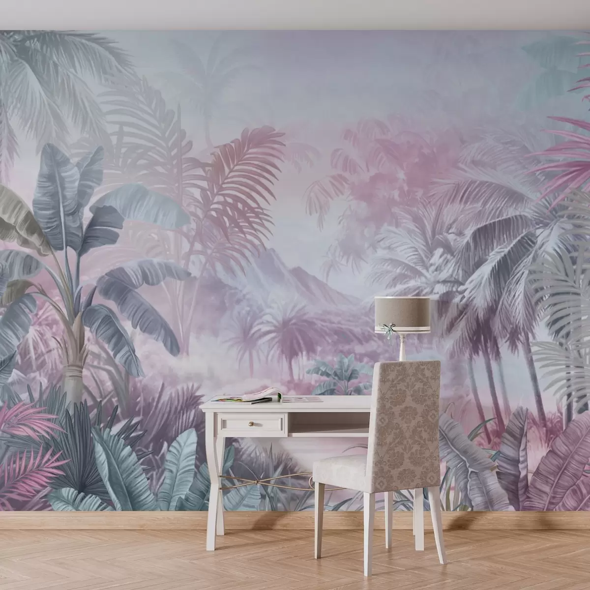 Murais de parede Floresta tropical em tons suaves de azul e rosa Nr. w01931v2