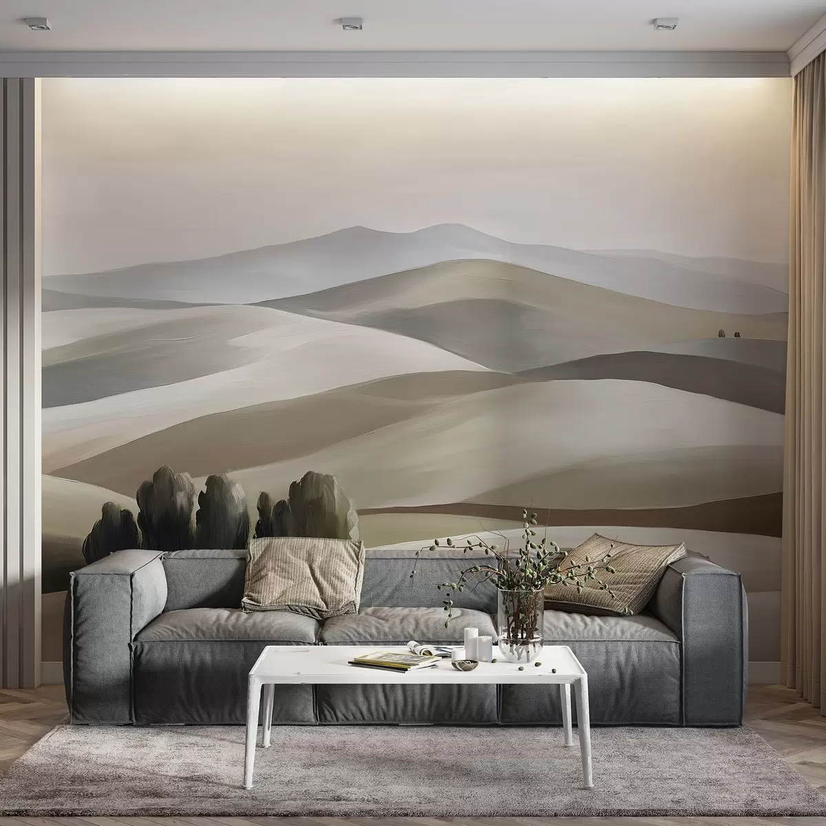 Murais de parede Paisagens com árvores, Toscana, cores bege e cinzento, estilo óleo Nr. w03880v1