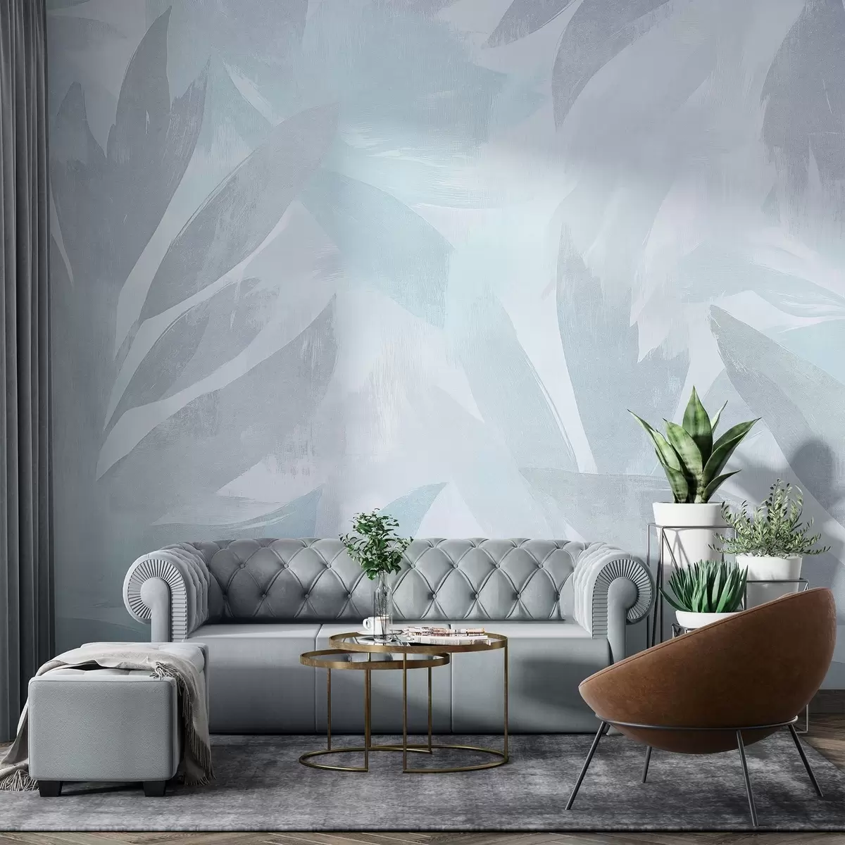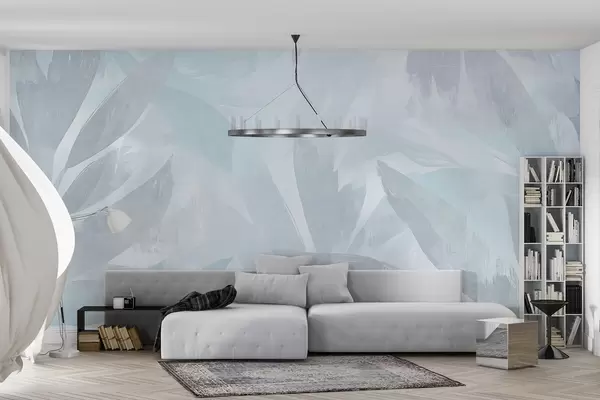 Murais de parede Folhas tropicais, florais, palmeiras, estilo pastel, cores azuis Nr. w03881v2