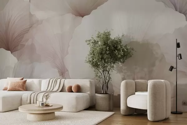 Murais de parede flores, pétalas, creme, cinzento, suavidade, calma Nr. w04256v1