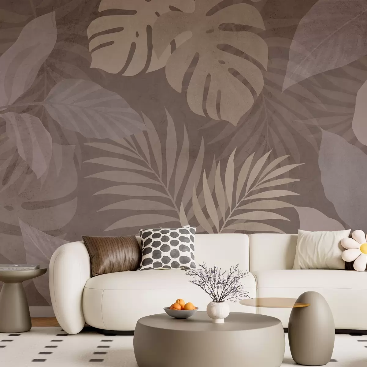 Murais de parede folhas tropicais texturizadas sobre um fundo chocolate Nr. w05063v2