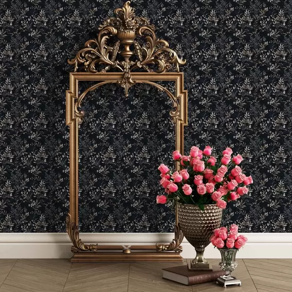 Papel de parede Estampado floral clássico em cores claras sobre um fundo escuro Nr. a00166v2